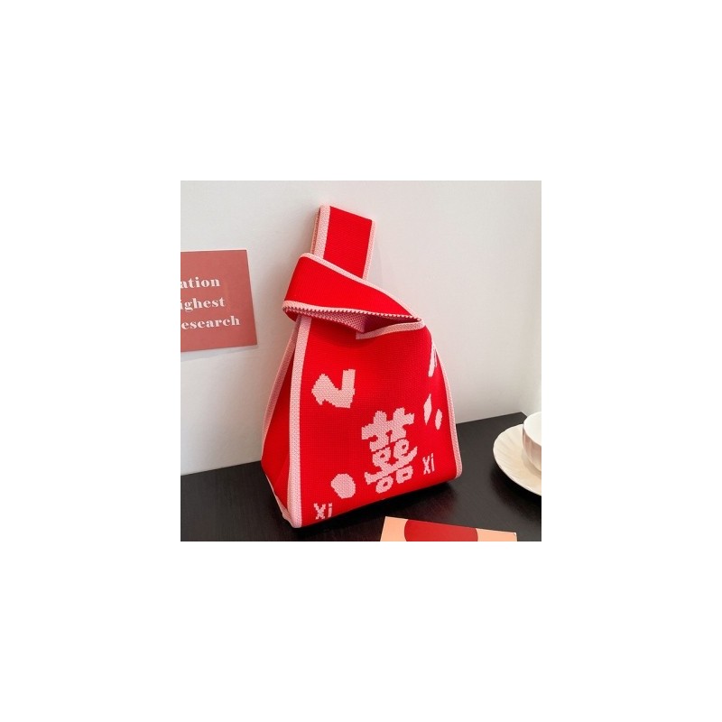 1pcs Handmade Knit Handbag Women Mini Knot Wrist Bag Japanese Casual Color Tote Bag Student Reusable Shopping Bags 20x35cm
