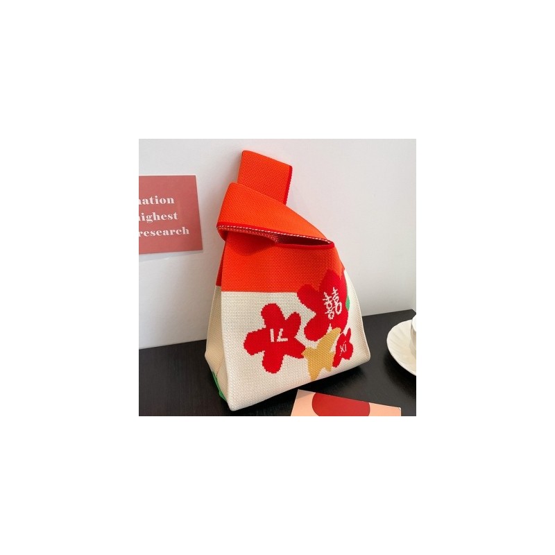1pcs Handmade Knit Handbag Women Mini Knot Wrist Bag Japanese Casual Color Tote Bag Student Reusable Shopping Bags 20x35cm