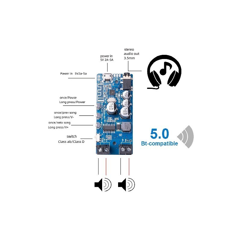 Bluetooth-compatible audio signals of mobile phones, laptops, and tablets can be received through this Bluetooth-compatible to the stereo amplifier output. The audio interface can also be connected to ordinary earphones with 3.5mm interface, which can turn ordinary earphones into Bluetooth-compatible earphones (without microphone, Does not support voice chat)