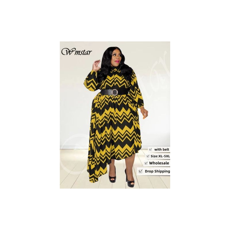 Plus Size Dresses for Women Fall Clothes Striped Print Sexy Irregular Hem Maxi Dress with Belt