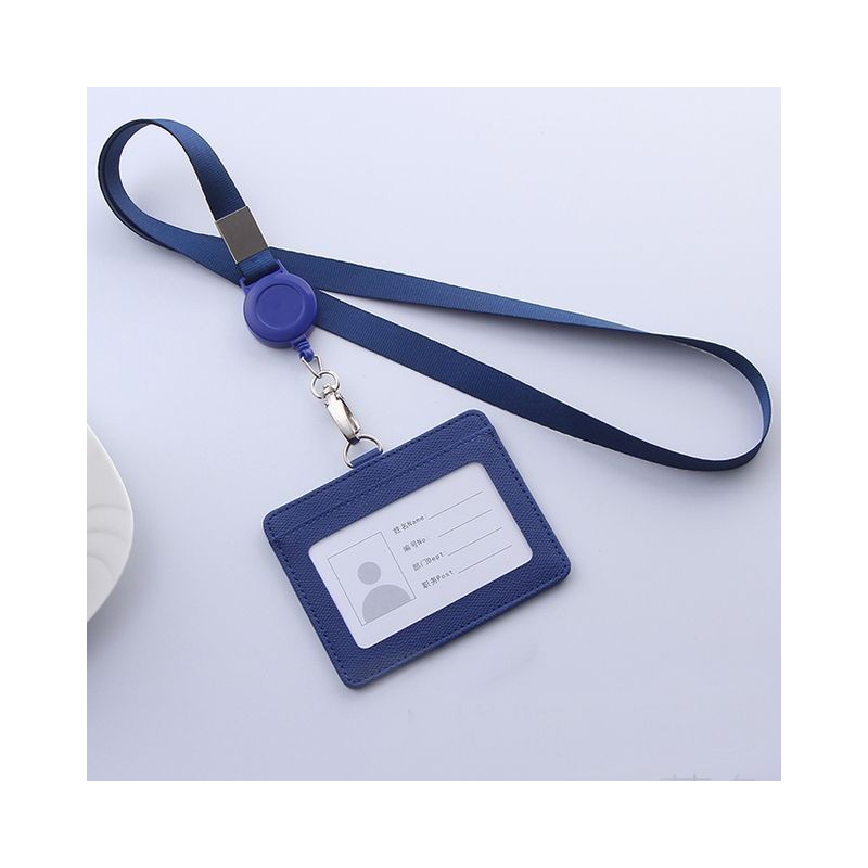 Retractable ID Card Badge Holder Lanyard Set Leather Business Card Cover Case School Office Supplies Student Card Bus Card Case