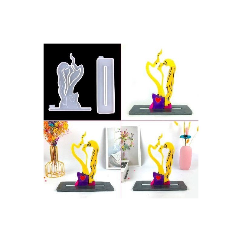 Kissing Couple Silicone Mold Epoxy Resin Base Mould Creative Home Ornament Romantic Valentine Day Statue Desktop Decors