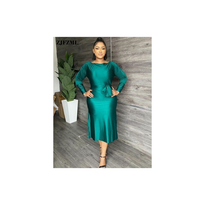 Elegáns divatos női kötszeres sellőruha klasszikus kerek nyakú, hosszú ujjú, térdig érő ruhák Vitnage hírességek koktélruha