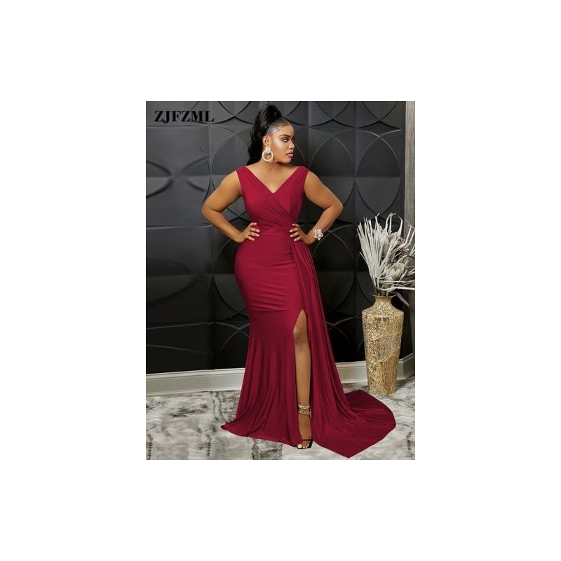 Gyönyörű, oldalsó, földig érő ruhák Női, V dekoltázsú, ujjatlan Vestidos Vintage Night Clubbing születésnapi ruha