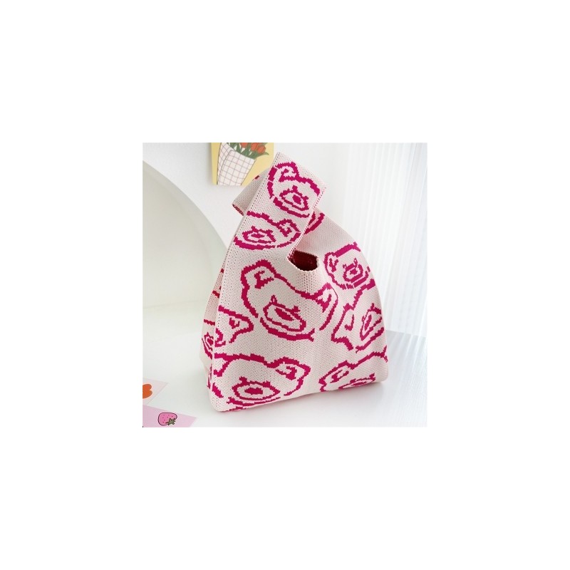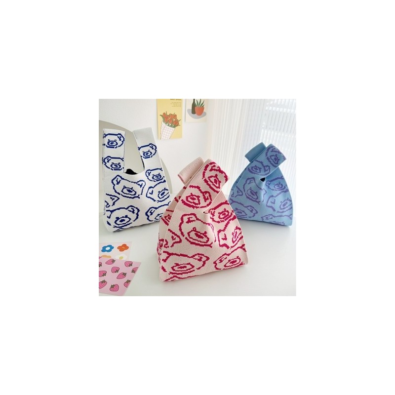 Rajzfilm medve kötött táska japán stílusú csuklós kézitáska női érme pénztárca és mobiltelefon táskák újrafelhasználható bevásárlótáskák 2023 új