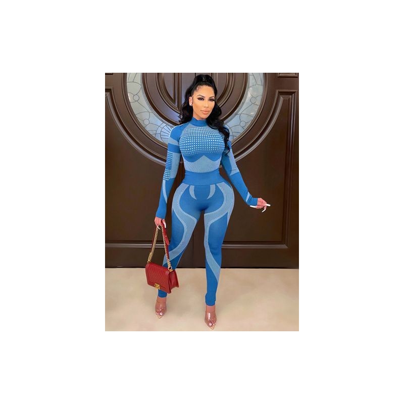 Autumn Winter Women's Sets Gymwear Clothing 2022 Geometric Pattern Long Sleeve Slim Tops and Fitness Pencil Legging Female Suit