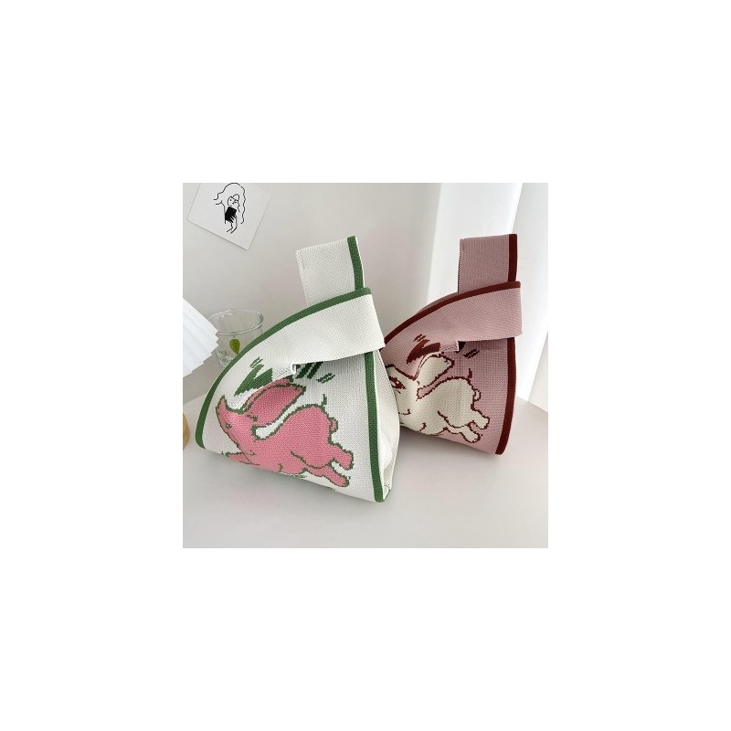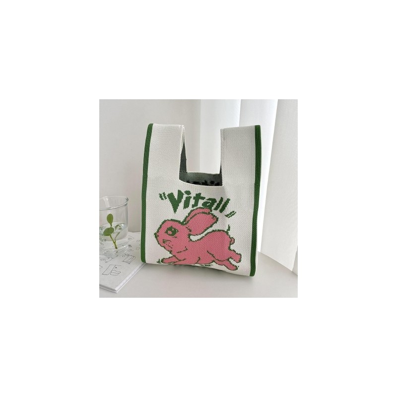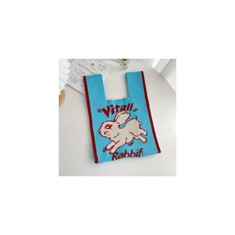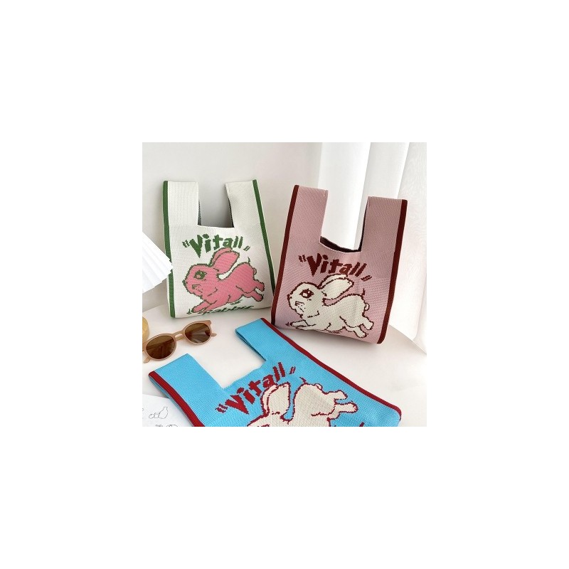 Rabbit Knitted Handbag Women Shoulder Bag Fashion Hollow Out Tote Ladies Female Woven Shopper Purse Shopping Bag Key Pouch Gift
