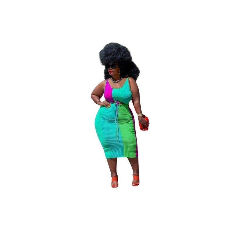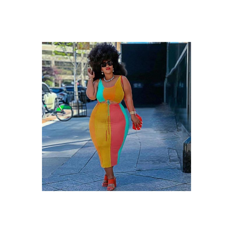 Nagy méretű szoknyák szettek bordázott kétrészes ruhák Crop top és szoknya alkalmi szexi csíkos illesztés