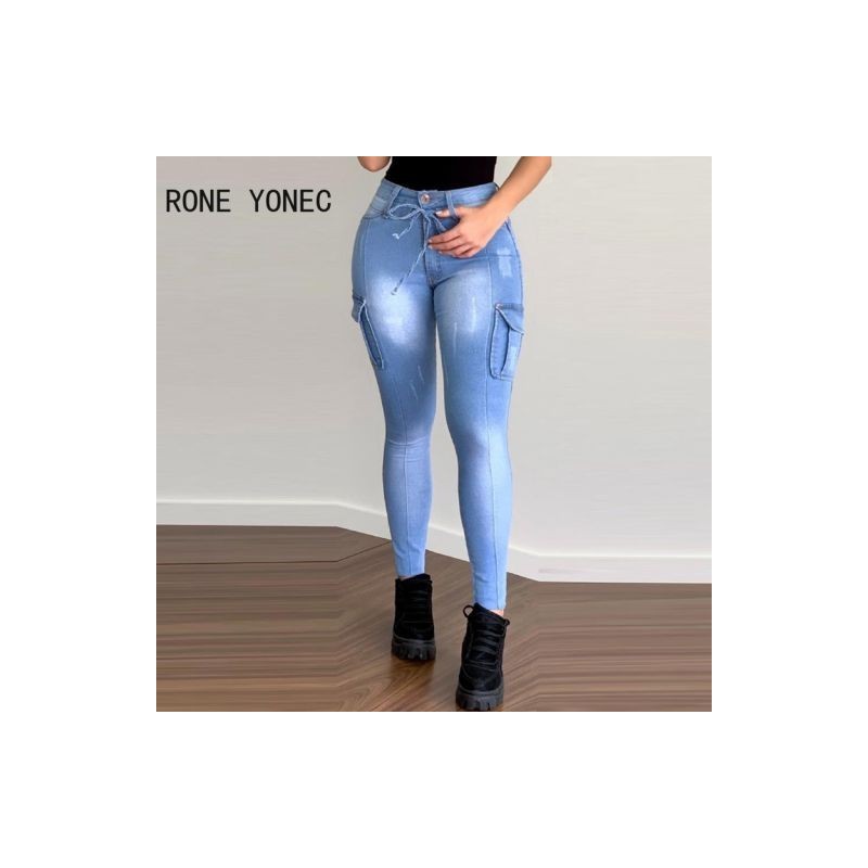 Női divat Elegáns Fűzős Zseb Fényes Vonal Dekoráció Skinny Farmer Farmer nadrág