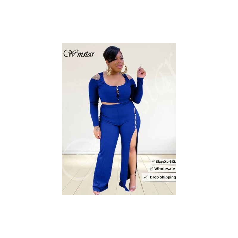 Nagy méretű, kétrészes ruhák, női őszi ruházat, tömör felső és nadrág, kiszélesedő csúszószegélyhez illő készlet