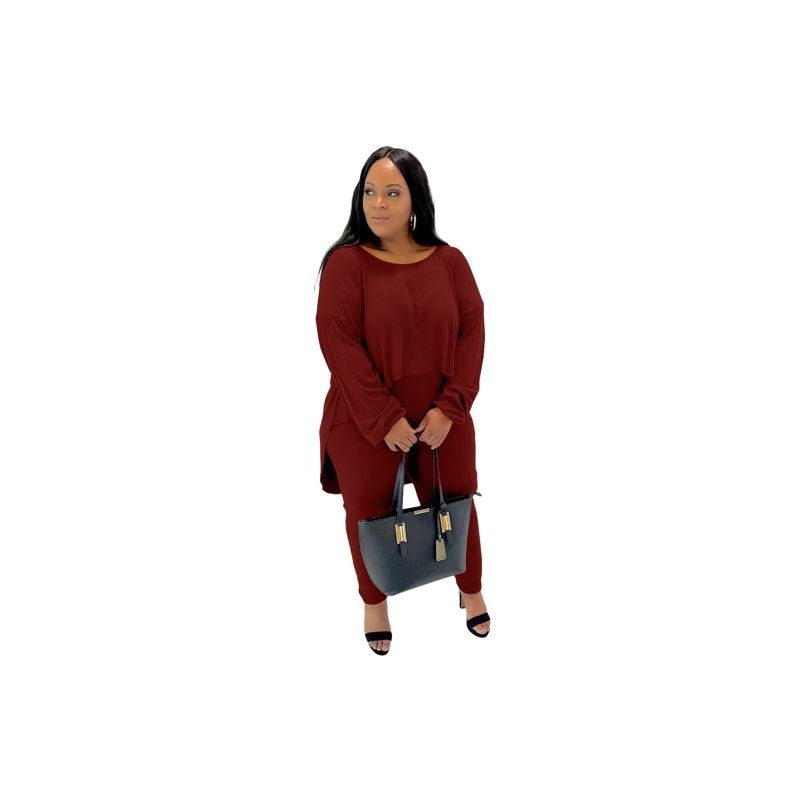 Plus Size Pants Sets Women Fall Clothes Casual 2 Piece Set Irregular Hem Tops Stretch Leggings Tracksuit
