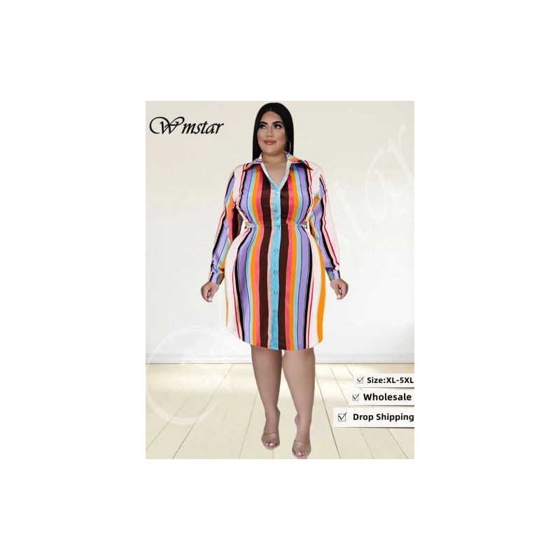 Nagy méretű ruhák Női őszi ruhák Csíkos kivágású, rugalmas derékú Elegáns midi ingek ruha