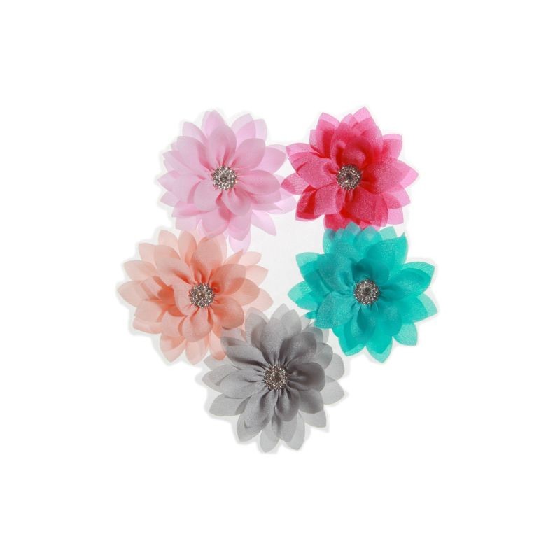 5 DB 8,5 cm-es 3,4 hüvelykes lótusz sifon virágok gombbal lányoknak fejpántok Műszövet virág hajkiegészítőkhöz