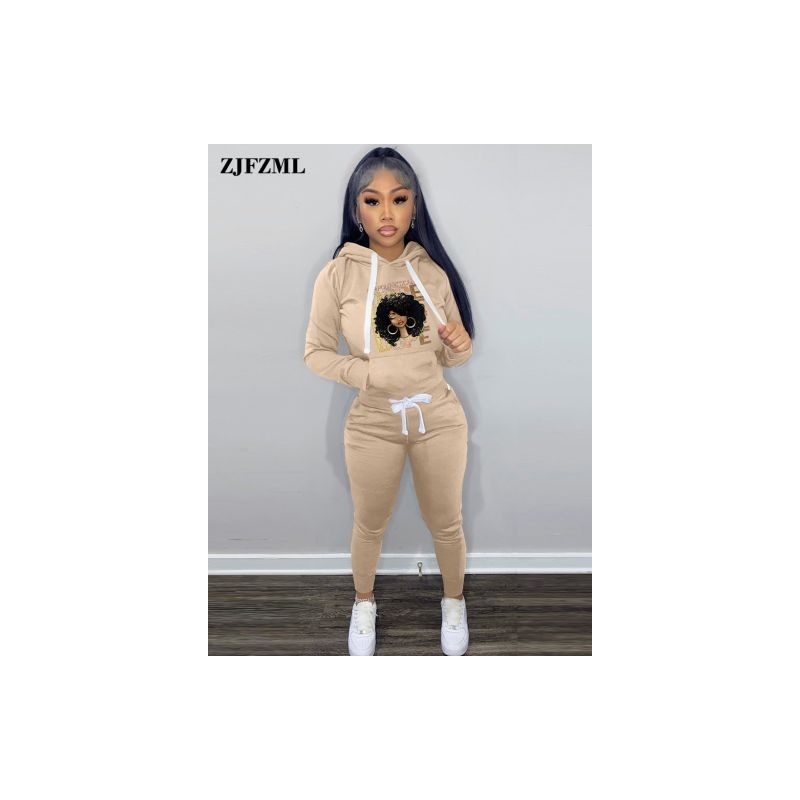 Autumn Winter Women Plush Tracksuit Comfy Pattern Print Hooded Long Sleeve Pockets Hoodies and Drawstring Waist Workout Trousers
