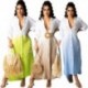 Cardigan Long Dresses for Women Belt Ankle Length Long Sleeves Mid Waist Solid Printing Lapel Fashion Wholesale Dropshipping