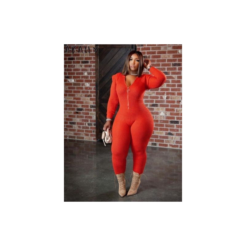 Akaily narancssárga bordázott kötött kombi női 2022 egyrészes őszi téli ruhák 2022 kapucnis hosszú ujjú Bodycon jumpsuit