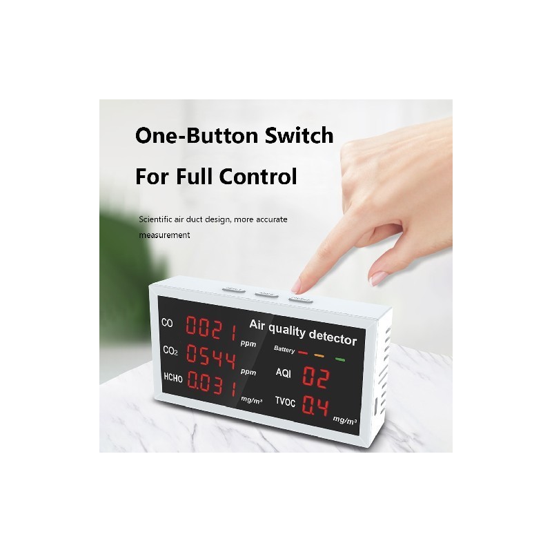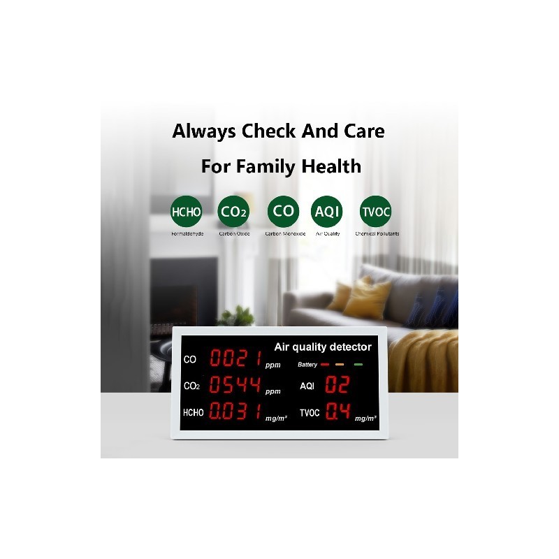 Easily detect five major substances: HCHO, TVOC, CO, CO2, AQI.