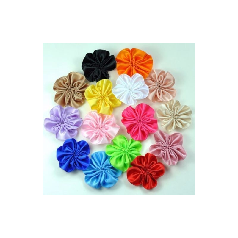 10pcs/lot 2" 16colors Hair Clips Satin Ribbon Petal Flower For Hair Accessories Artificial Ruffled Fabric Flowers For Headbands