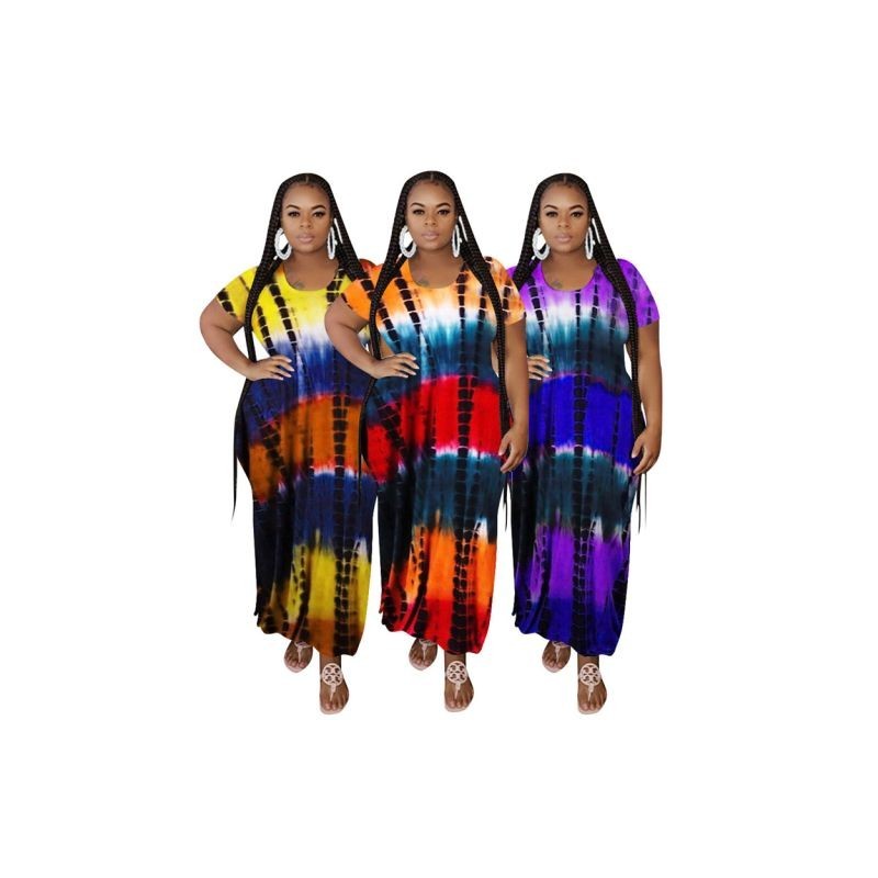 Plus Size 5XL Women Dress Summer 2021 Wholesale Tie Dye Print Loose Fashion Hot Sale Casual Maxi Dresses for Woman Dropshipping