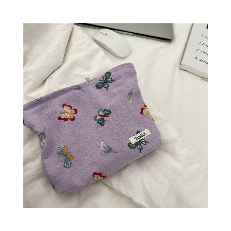 Butterfly Embroidery Cosmetic Bag Clutch Bag Large Makeup Organizer Bags Korean Cosmetic Pouch Women Cute Toiletry Beauty Case