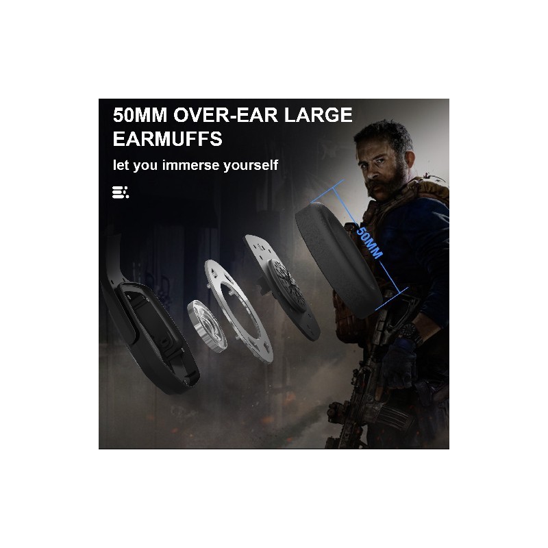 This headset adopts earmuffs with over-ear design, The adjustable headband is suitable for different Adjusting the microphone up and down at