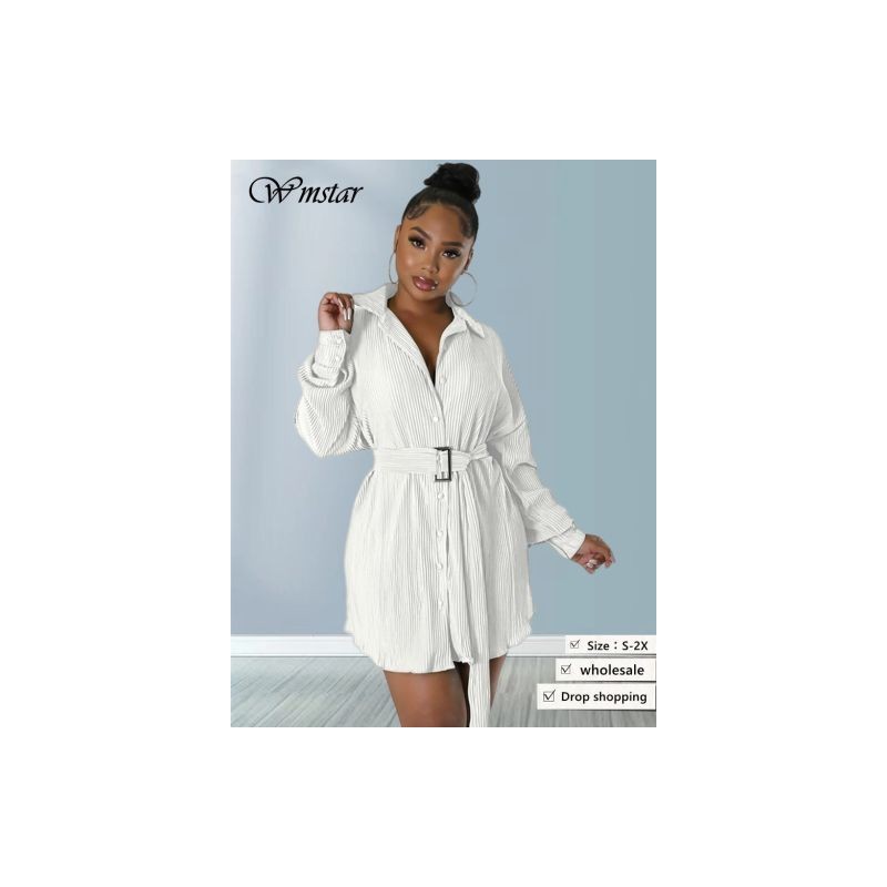 Női ruha övvel Őszi ruhák Bordás hosszú ujjú ing Alkalmi divat Utcai ruházat Mini ruha
