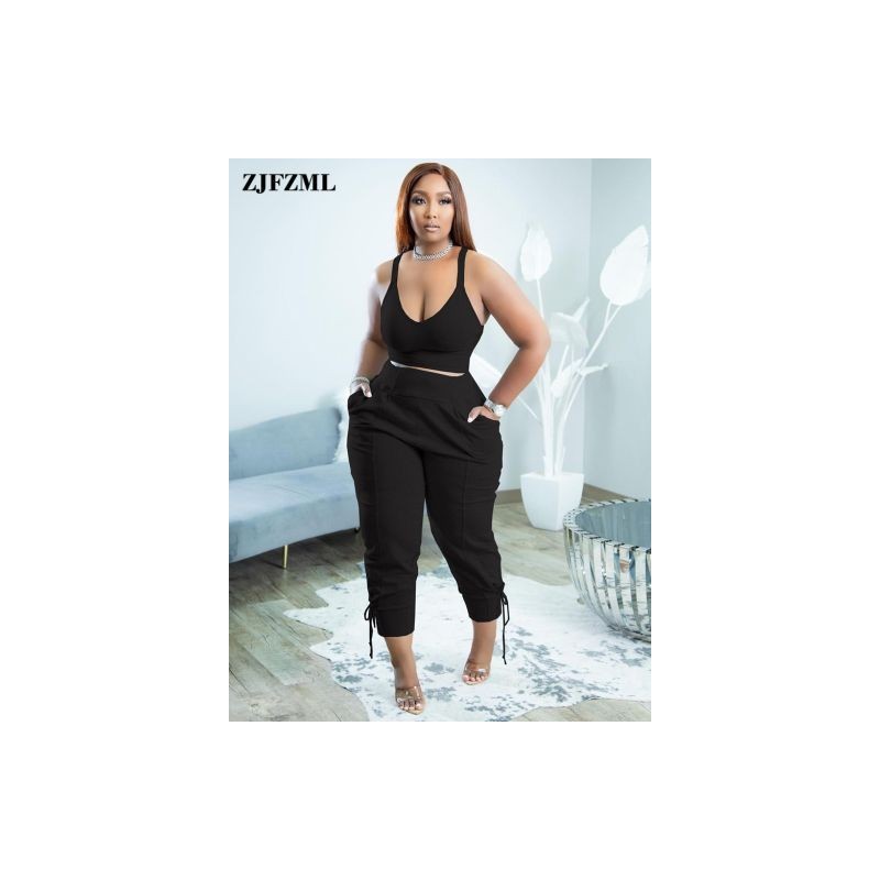 Homecoming Breathable Two Piece Sets Women Cleavage Deep Backless Crop Top and High Waist Relax Fit Pants Smart Female Tracksuit