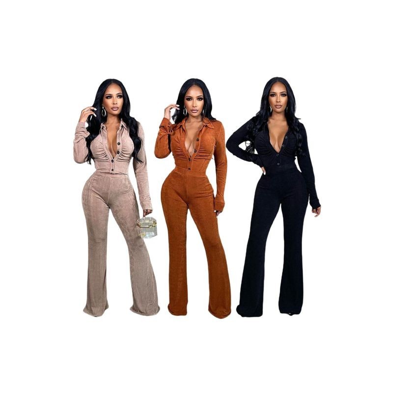 Two Piece Outfits Wear Women Elegant Pants Sets Winter Clothing Turn Down Collar Top Casual Matching Suit