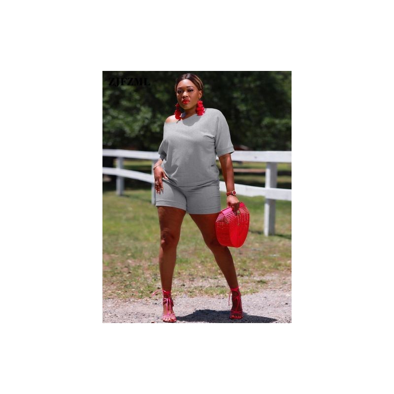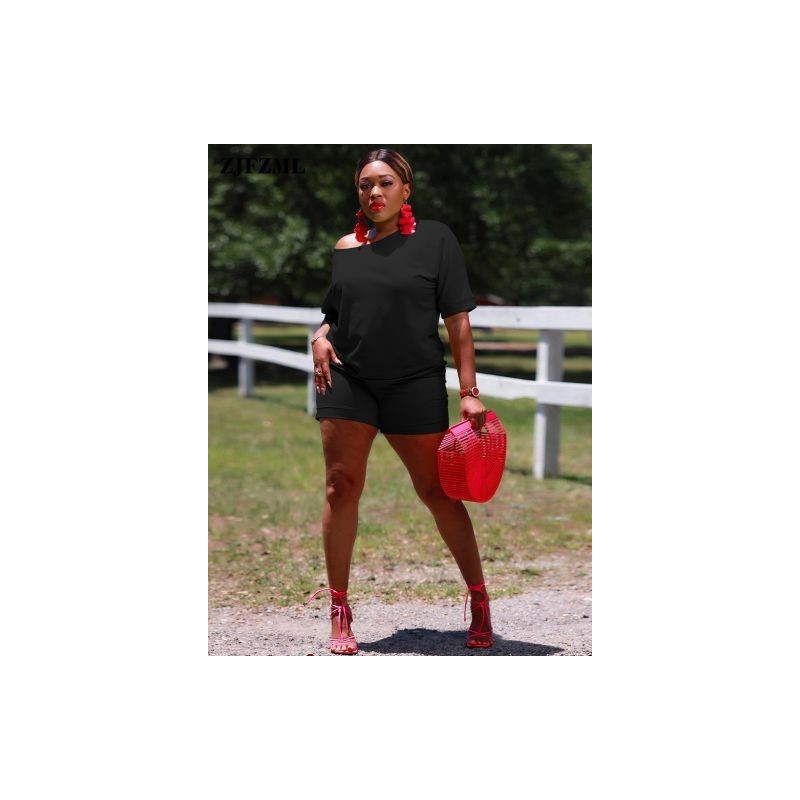Concise Refreshing Two Piece Sets Summer Hipster One Shoulder Three Quarter Sleeve T-shirt harajuku Elastic Short Streetwear