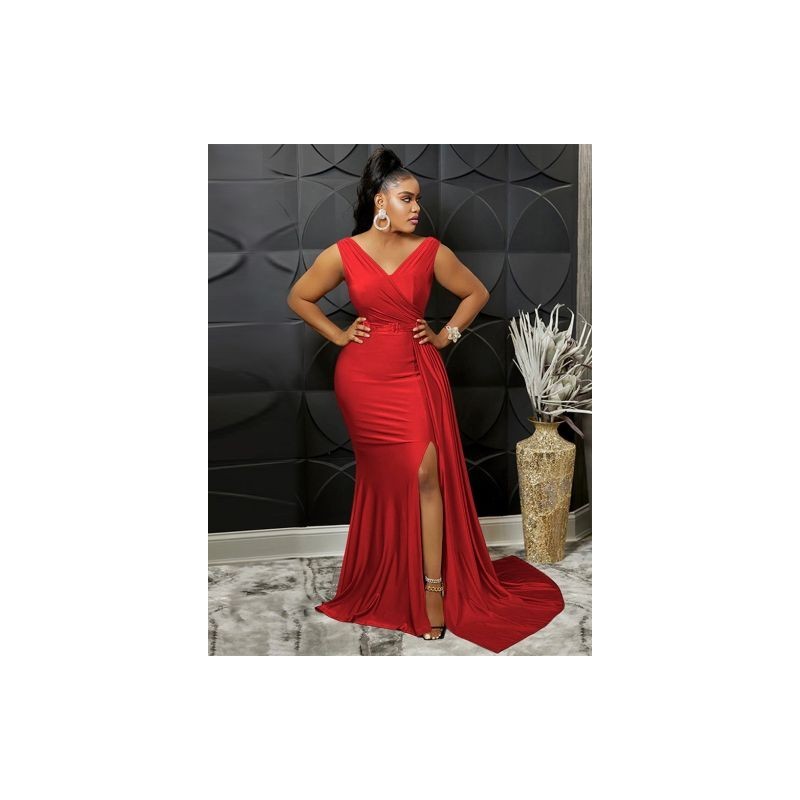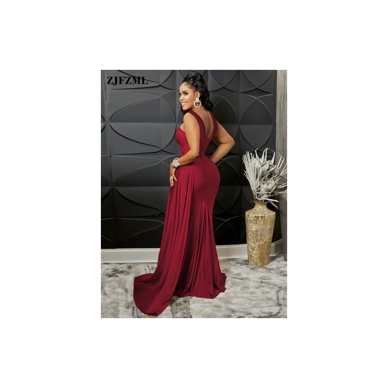 Gyönyörű, oldalsó, földig érő ruhák Női, V dekoltázsú, ujjatlan Vestidos Vintage Night Clubbing születésnapi ruha
