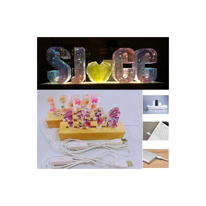 LED fény világító talp akril barkács lámpa tartó Kreatív éjszakai fény téglalap fa ütős darab műgyanta kézműves