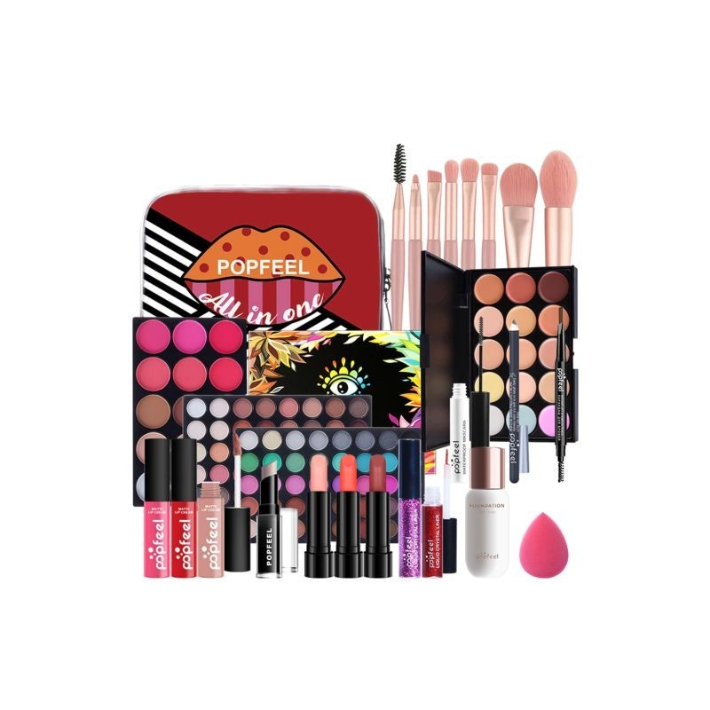 Make Up Sets Full Beauty Natural Lipstick Eyeshadow Eyebrow Pencil Lip Gloss Foundation Makeup Brush Powder Puff Cosmetics Kit