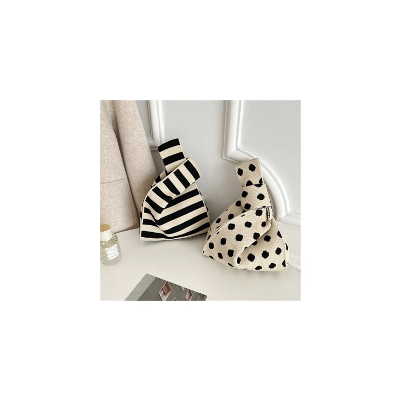 Wide Striped Handmade Knitted Handbag Minimalist 2023 Korean Women Mini Knot Wrist Bag Tote Bag Student Reusable Shopping Bags