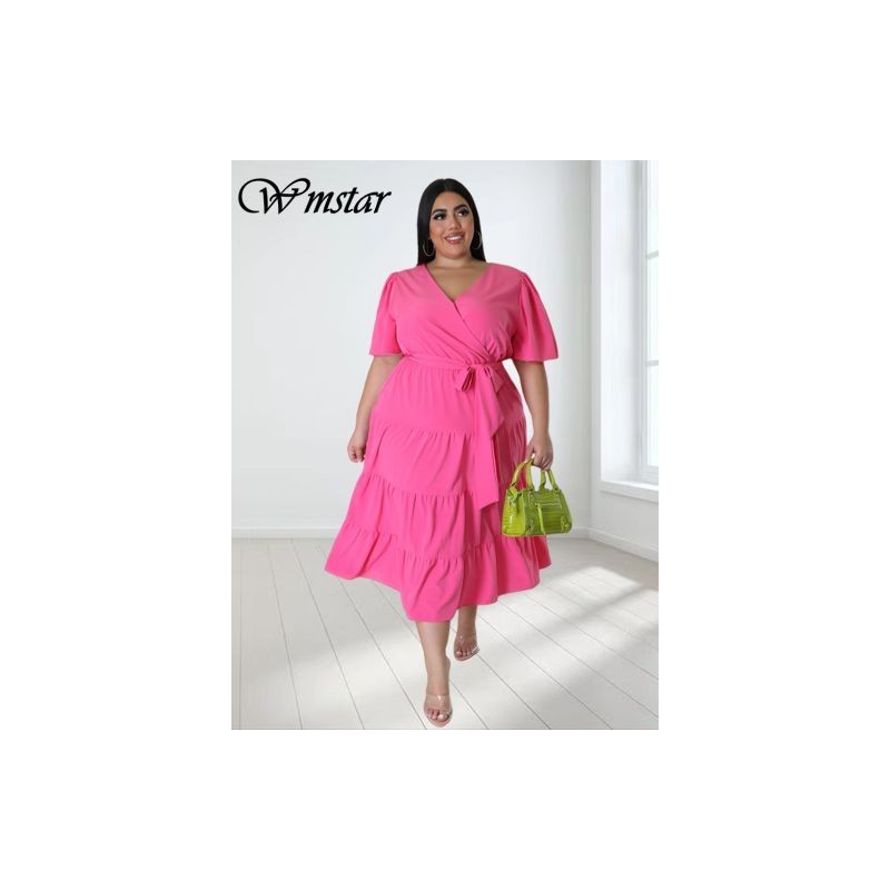 Plus Size Dresses for Women V Neck New In Summer Clothes Solid Elegant with Bandage Maxi Dress