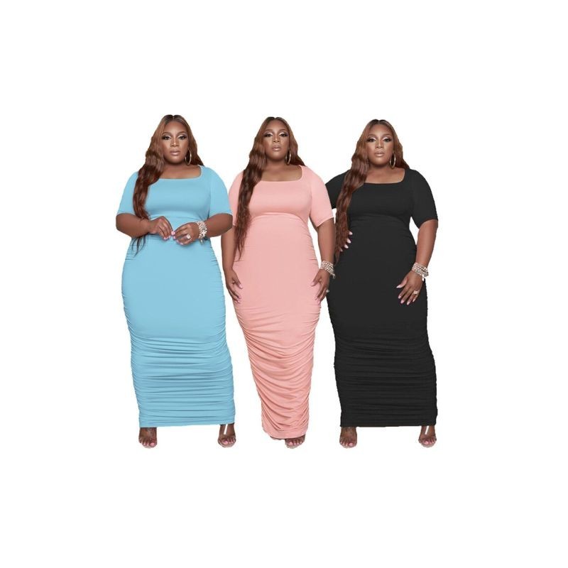 Plus Size Women Clothing Dress Summer 2021 Wholesale Solid Casual High Waist Stretch Stacked Elegant Maxi Dresses Dropshipping