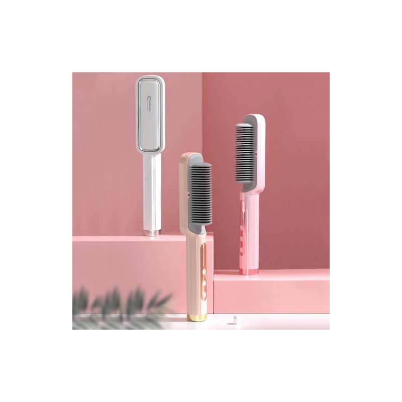 2 in 1 Electric Hot Combs Anti-scalding Hair Straightener Brush Ceramic Hair Curler Heated Electric Smart Brush Hair Straightener EU