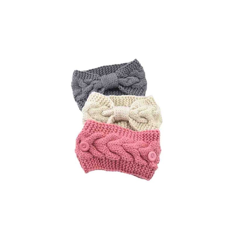 Solid Color Crochet Bow Knitted Headband With Button Twist Knotted Ear Warmer Women Mask Holder Turban Hairband Hair Accessories