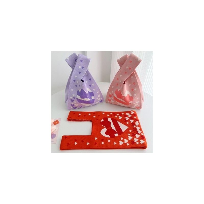 Fashion Love Vest Bag Knitted Handbag For Women Japanese Style Mini Shoulder Bag Wrist Bag Key Phone Pouch Shoppinng Bag 2023