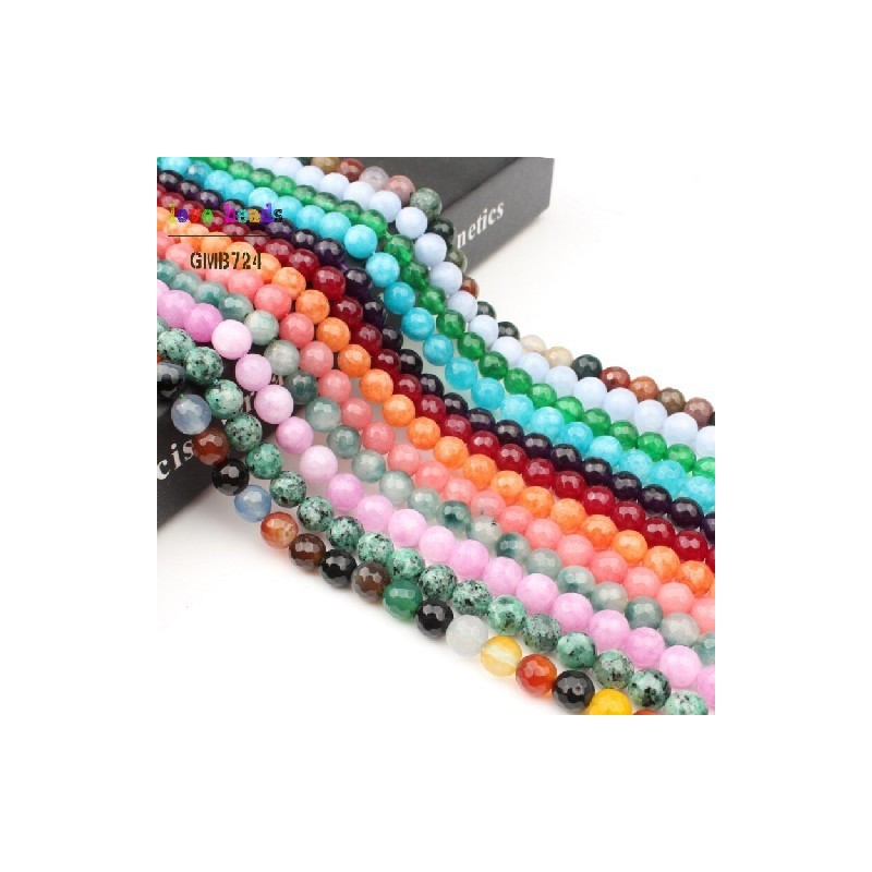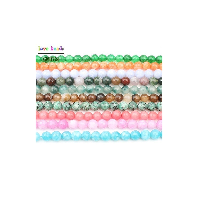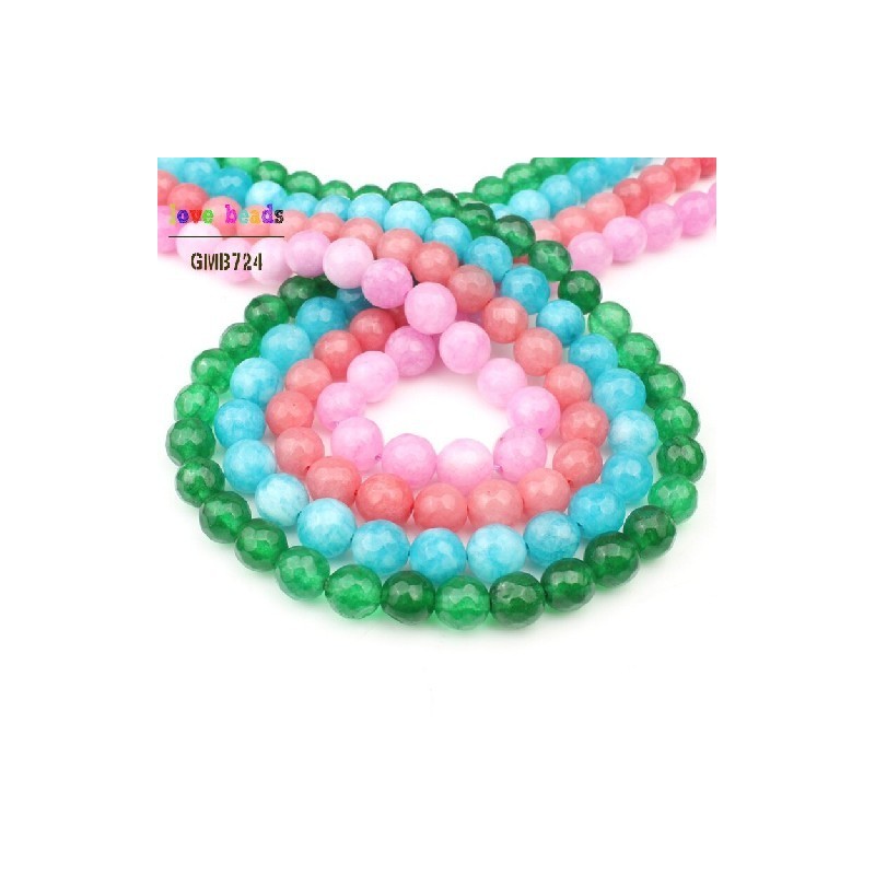 4/6/8/10mm Natural Stone Faceted Pink Blue Chalcedony Jades Agates Round Beads for Jewellery Making 15'' DIY Necklace Bracelet