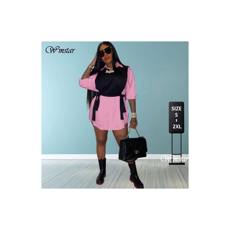 Shirt Dresses for Women S-2xl Casual Patchwork Bandage Mini Dress Loose Fashion Clothes Tracksuit