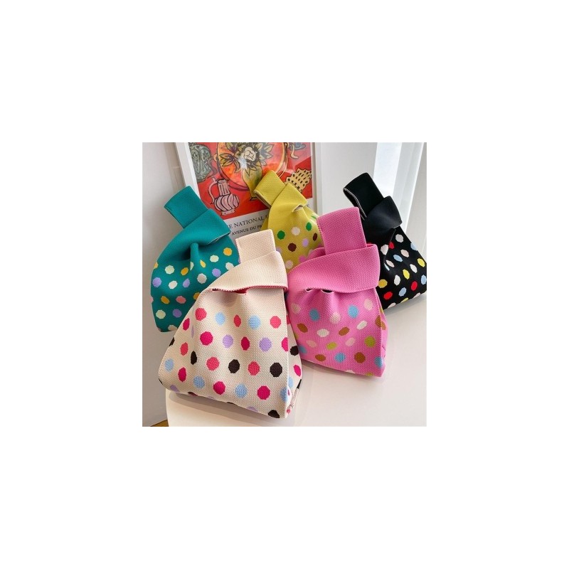 Cute Dot Knitted Handbag Women Mini Knot Wrist Bag Portable Casual Walking Square Tote Vest Bag Student Reusable Shopping Bags