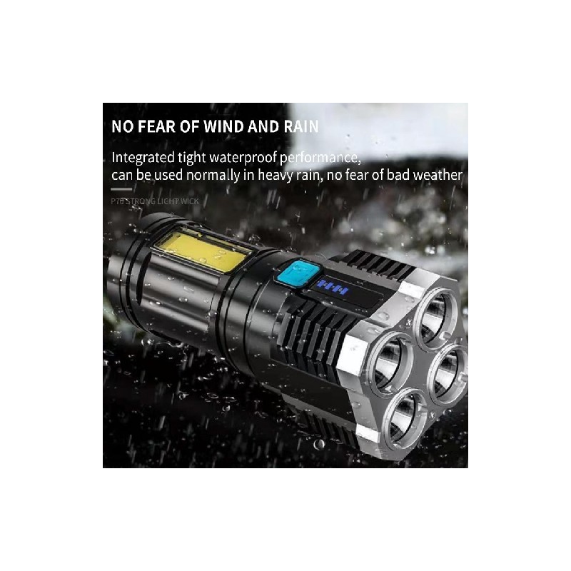 Super bright 5 LED flashlight rechargeable multifunctional waterproof long-distance spotlight battery display cob lamp