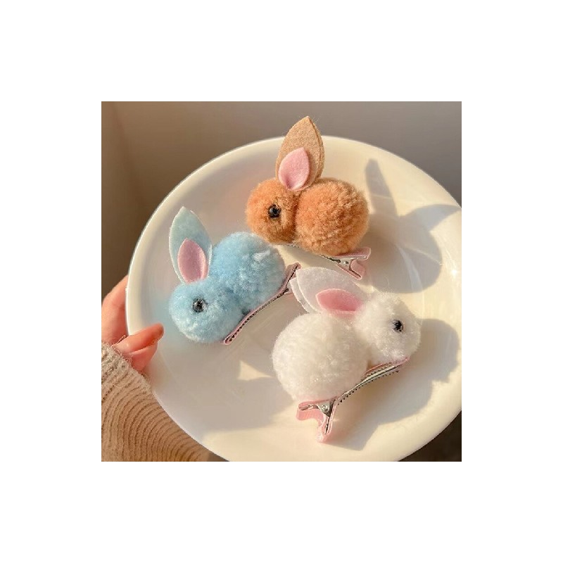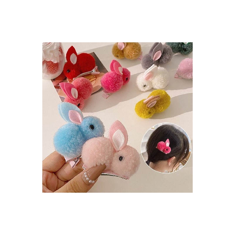 Fashion Rabbit Pompom Hair Clips Girls animal Hairpins Furry Barrettes Headwear Plush Hairpins Hair accessories For Children