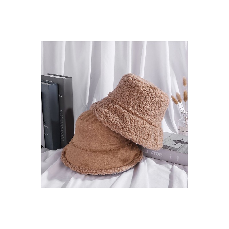 Fashion Faux Fur Winter Bucket Hat Warm Teddy Furry Hats For Women Thicken Bob Panama Cap Double-Sides Outdoor Fisherman Hat