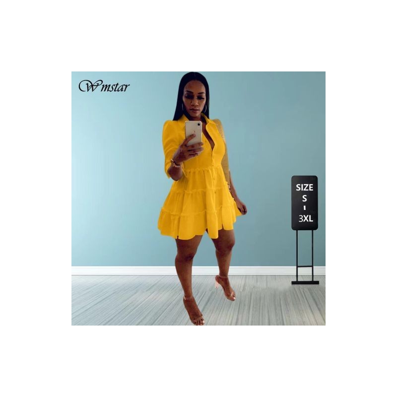 2022 Spring Summer Dresses Clothing Women Solid Turn Down Collar Half Sleeve Elegant Mini Dresses New