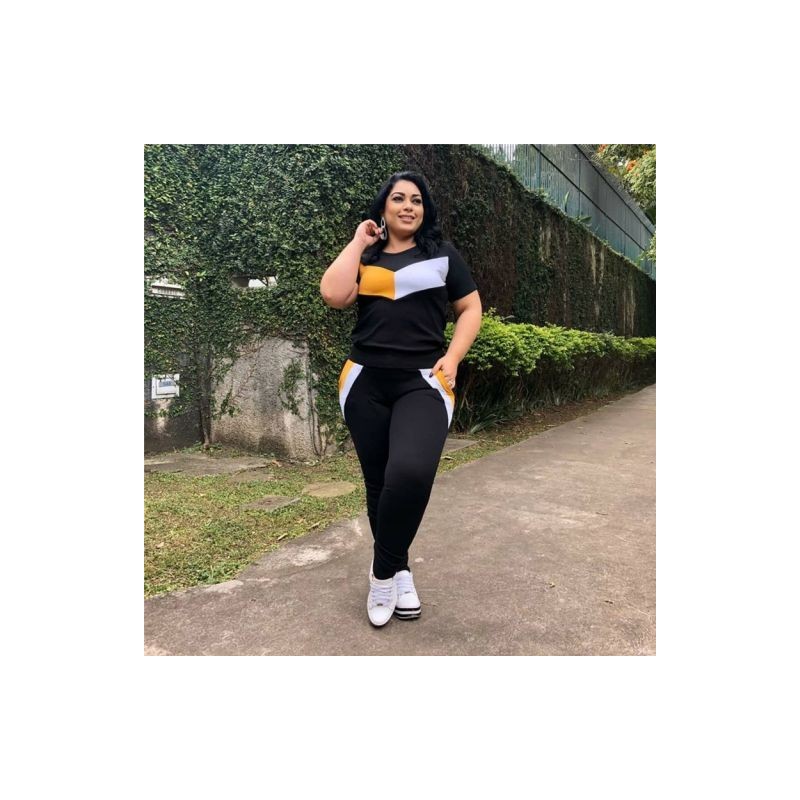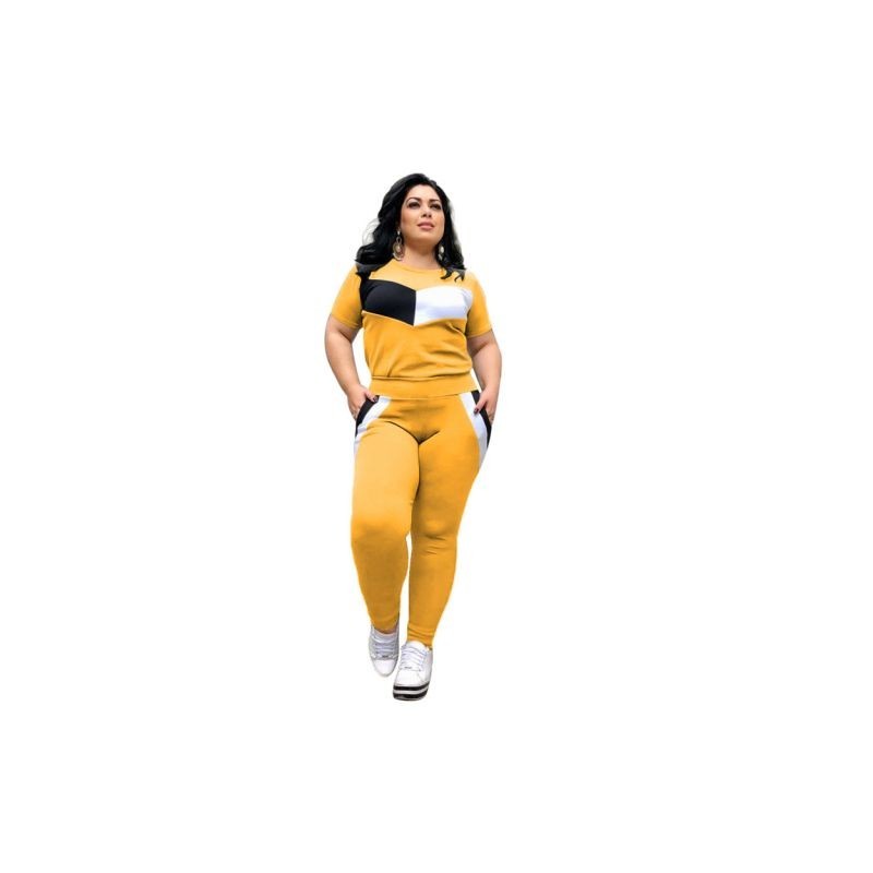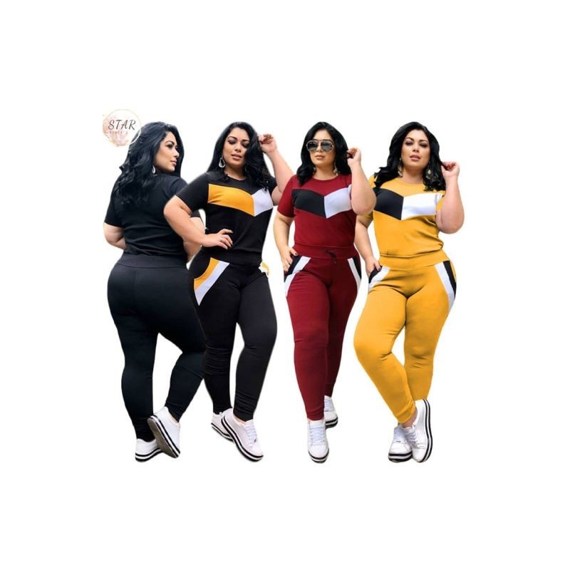 Plus Size 2 Piece Set Women Tracksuits Patchwork Crop Top Short Sleeve Leggings Jogger Sport Suit Stretch