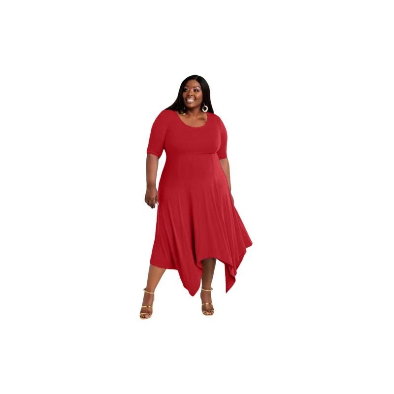 Plus Size Clothing Dress Women Summer Wholesale Solid Casual High Waist Stretch Irregular Hem Elegant Midi DressesDropshipping