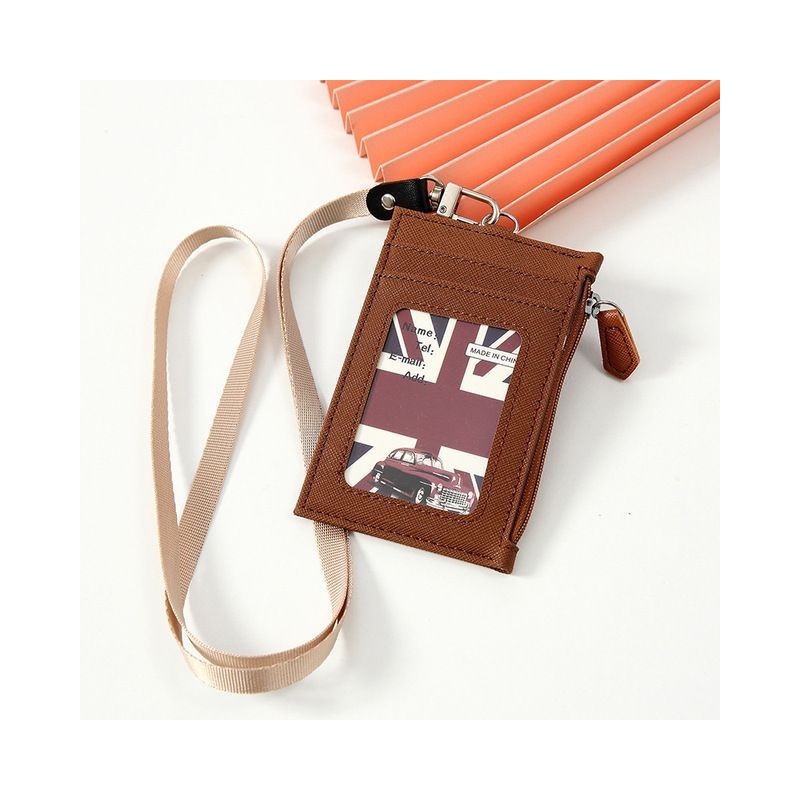 1pc Leather Business Credit Card ID Badge Wallet Pouch Women Men Coin Card Purse Holder Neck Strap Lanyard Student Bus Card Bags