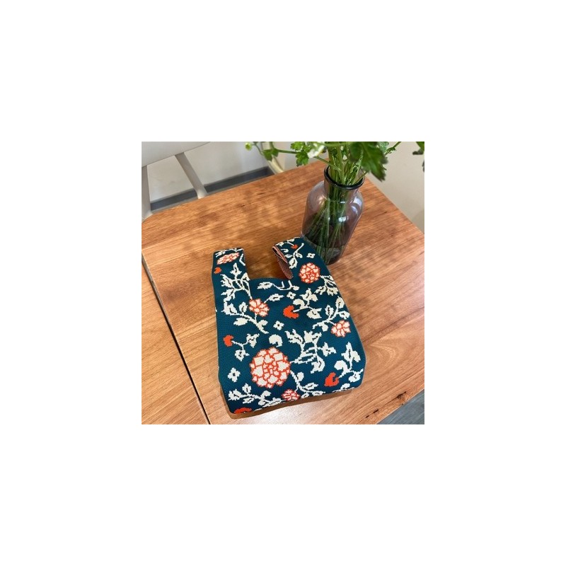 Japanese Niche Floral Knitted Handbag Female Handbag Retro Wrist Bag Shoulder Bag Casual Reusable Shopping Bags Women Purse Gift