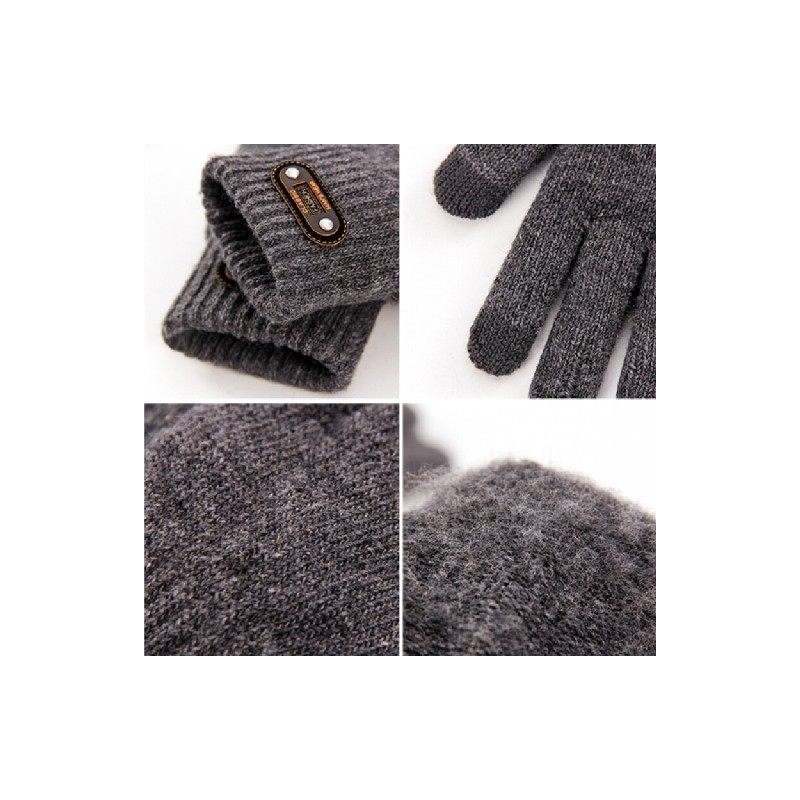 Téli gyapjú kötött vastag férfi kesztyű Érintőképernyős Meleg ujjas ujjatlan Öt ujjas kesztyű kültéri polár lovagló kesztyű